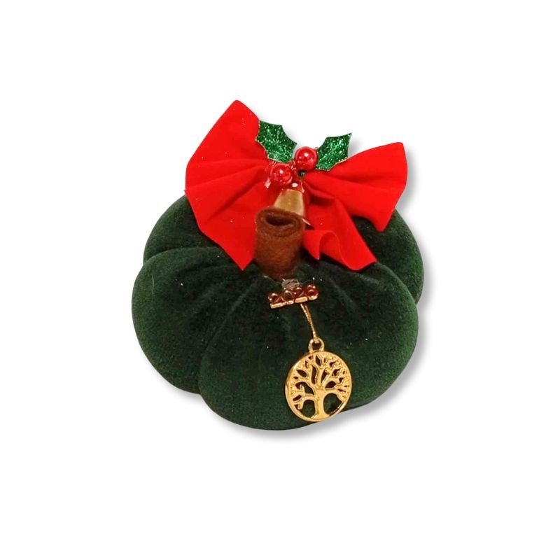 Βελούδινη κολοκύθα–γούρι, φτιαγμένη από ύφασμα άριστης ποιότητας, σε υπέροχο κυπαρισσί χρώμα.