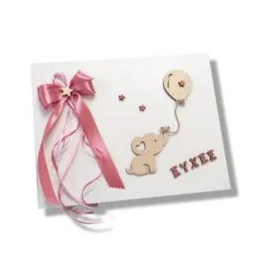 Βιβλίο ευχών για βάφτιση κοριτσιού ελεφαντάκι με μπαλόνι, 28Χ22εκ.