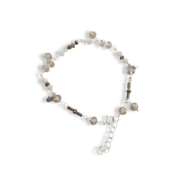 Χειροποίητο βραχιόλι με ασήμι 925, συνδυασμένο με λαμπερά κρύσταλλα και αιματίτη σε σχήμα αστεριού.