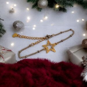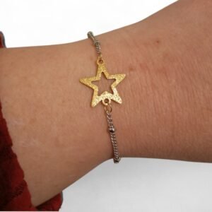 Βραχιόλι με ατσάλινο χρυσό link αστέρι και ατσάλινη αλυσίδα ασημί με χρυσή προέκταση.