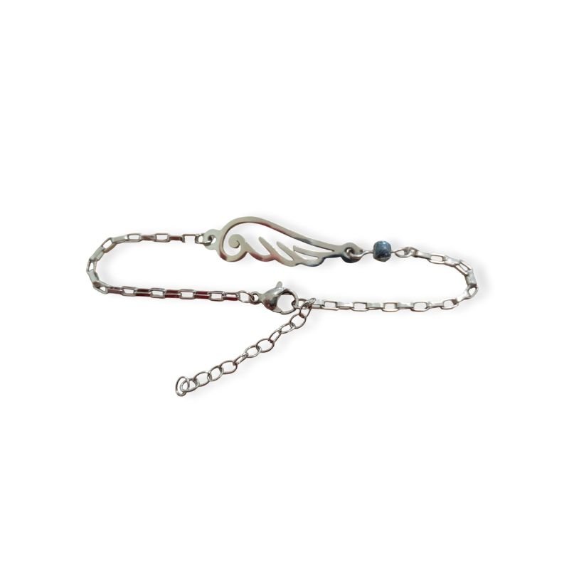 Βραχιόλι ατσάλινο με αλυσίδα τετράγωνη και link φτερό.