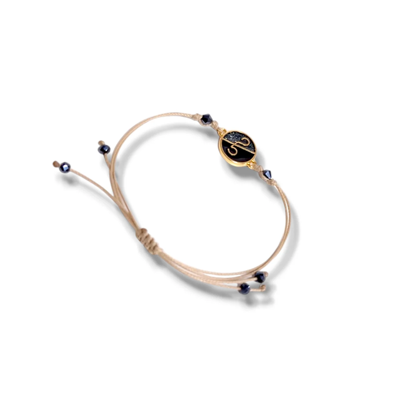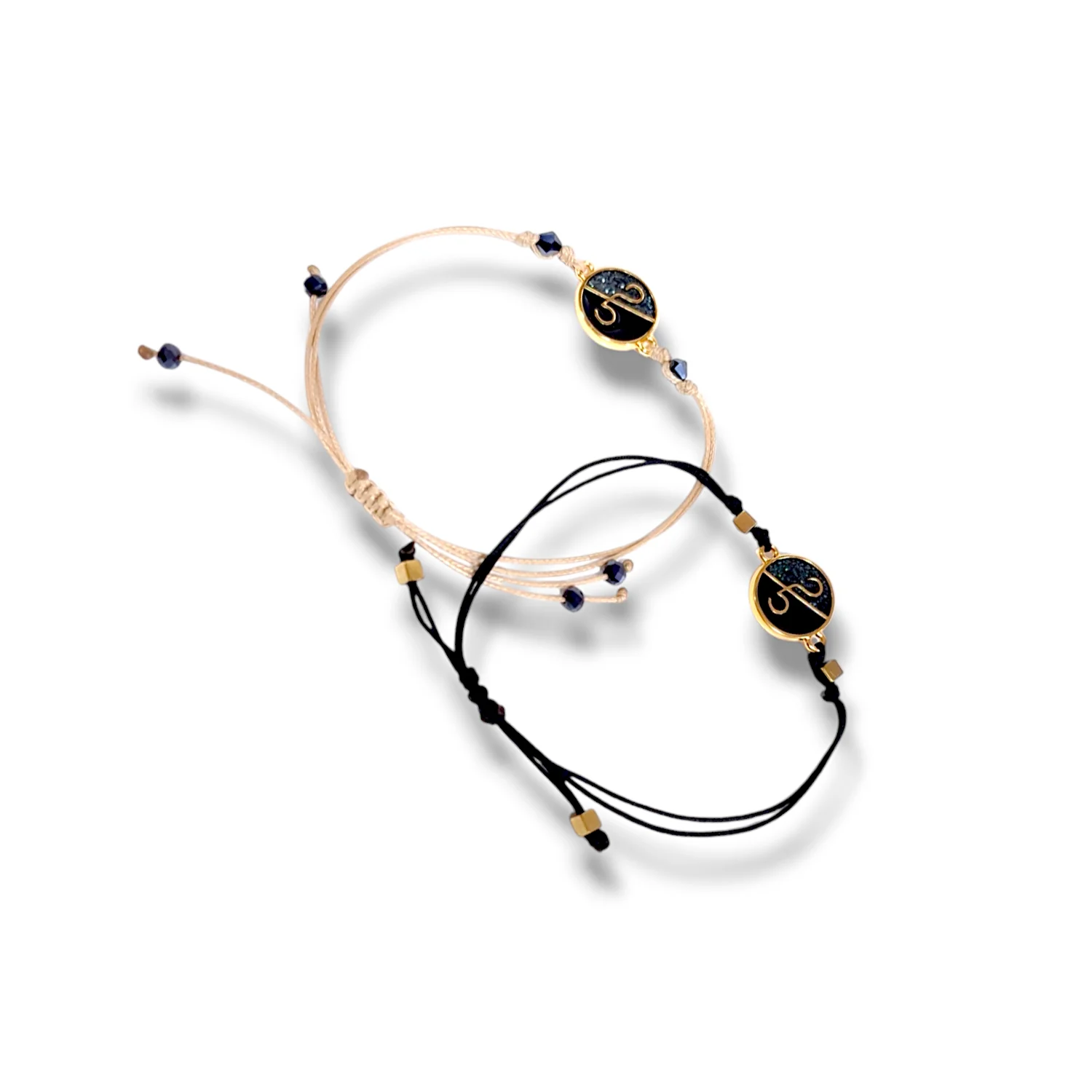 Βραχιόλι/ γούρι με σμάλτο για να έχουμε τύχη όλο το χρόνο! Φτιαγμένο με κρυσταλλάκια ή αιματίτη σε μαύρο ή εκρού κορδόνι και αυξομείωση για να προσαρμόζεται στο χέρι σας!