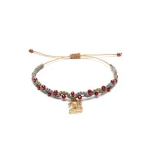 Το ιδανικό χειροποίητο αξεσουάρ και γούρι για το 2026! Φτιαγμένο με την τεχνική του μακραμέ, για ένα εντυπωσιακό πλέξιμο. Η εμφάνιση ολοκληρώνεται με αστραφτερές, κόκκινες χάντρες που πλαισιώνουν το κεντρικό του στοιχείο: ένα επιχρυσωμένο κρεμαστό με τον αριθμό ’26’. Ένα μοναδικό κόσμημα για να υποδεχτείτε τη νέα χρονιά με τύχη και στυλ. Διαθέτει ρυθμιζόμενο κούμπωμα με συρόμενο κόμπο για τέλεια εφαρμογή.