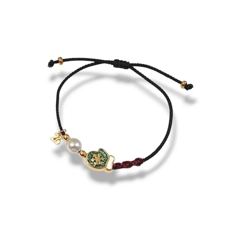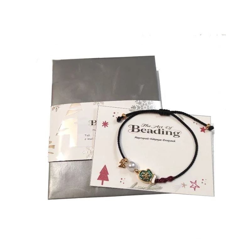 Βραχιόλι γούρι, Χριστουγεννιάτικο με πέρλα, μεταλλικό γάντι με σμάλτο και κρεμαστό στοιχείο ΄26.