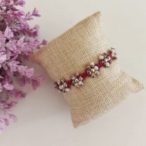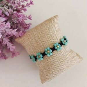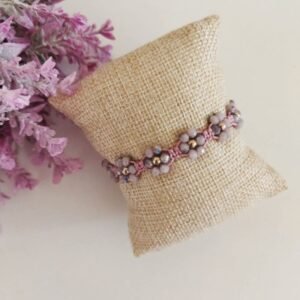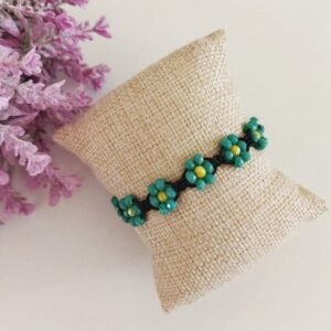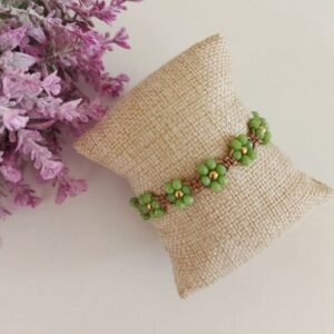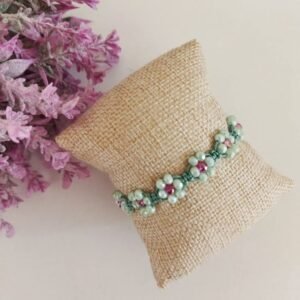 Χειροποίητο βραχιόλι με χάντρες κρυσταλλάκια που με την τεχνική της κομποδετικής (μακραμέ) δημιουργούν λουλούδια.