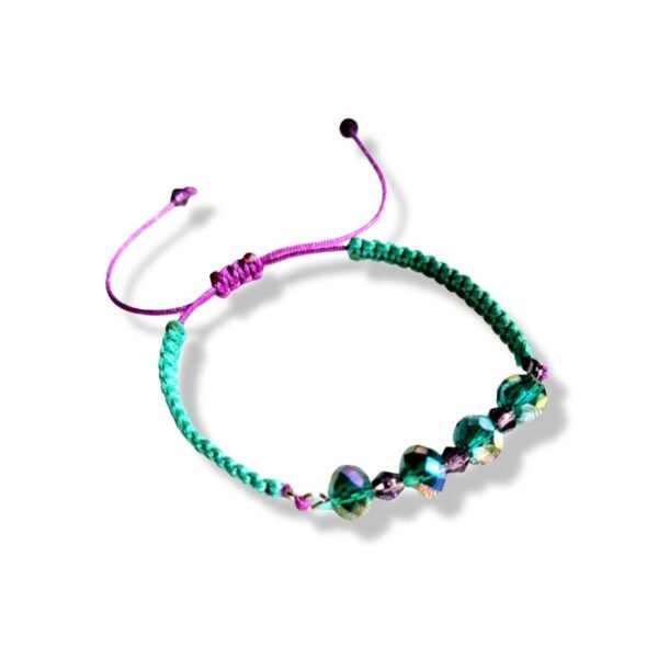 Βραχιόλι μακραμέ με κρύσταλλα ρυθμιζόμενο σε μωβ και βεραμάν χρώμα.