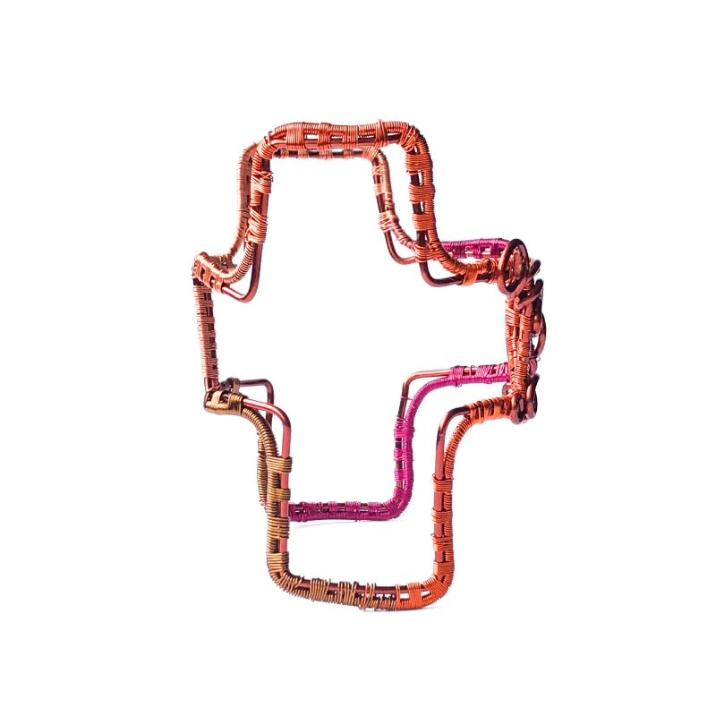 Η Μανσέτα διαθέτει ένα περίτεχνο πλεγμένο μοτίβο με 2 Σταυρούς σε 4 χρώματα Κεραμιδί, πορτοκαλί χαλκού, καφέ, magenta.