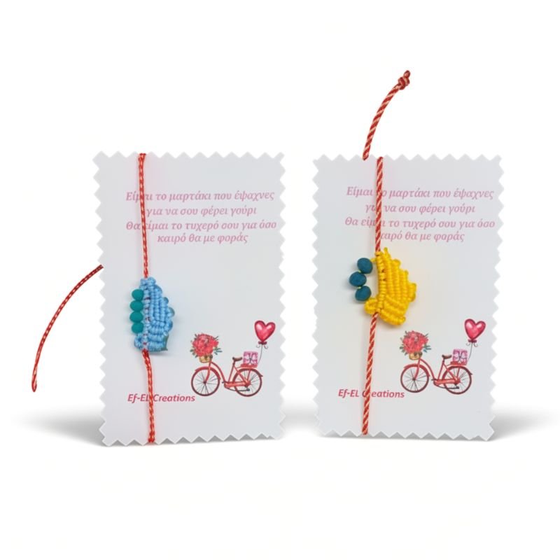 Μαρτάκια βραχιόλια καράβια κίτρινο και σιέλ με κρυσταλλάκια.