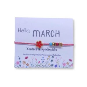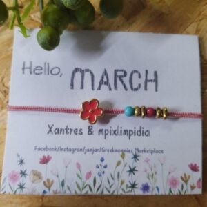 Βραχιόλι μαρτάκι με λουλούδι με κόκκινο σμάλτο και χάντρες ατσάλινες & χαολίτη.