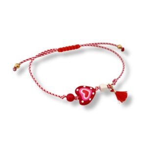 Βραχιόλι μαρτάκι με εντυπωσιακή γυάλινη καρδιά και χάντρα αιματίτη.