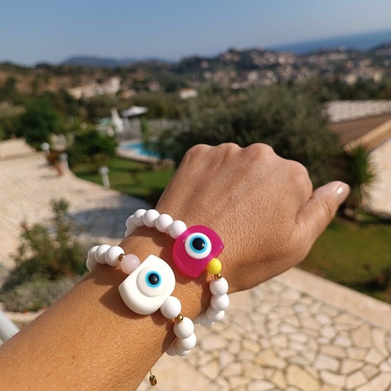 Βραχιόλι Μάτι ρητίνης, Φούξια και Λευκό