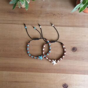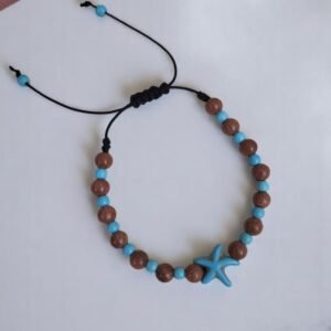 Σε δύο συνδυασμούς χρωμάτων. Σε τυρκουάζ και χρυσοκαφέ με τυρκουάζ αστερία στην μέση ή σε ζαχαρί και χρυσοκαφέ με ζαχαρί αστερία. Ελαφρύ και ευκολοφόρετο.
