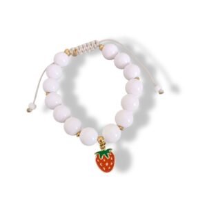 Βραχιόλι με λευκές χάντρες και μοτίφ ατσάλινο καρπουζάκι ή φράουλα με σμάλτο το απόλυτο καλοκαιρινό τρεντ.
