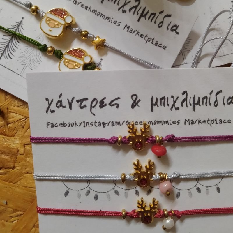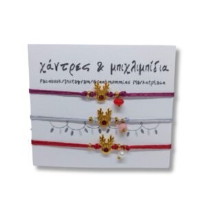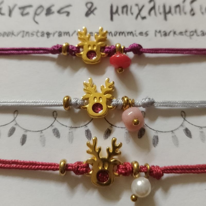 Βραχιόλι με επιχρυσωμένο στοιχείο πρόσωπο τάρανδος, ατσάλινες χάντρες, χάντρα νεφρίτη και αυξομείωση.