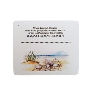 Είναι τοποθετημένο σε καρτελάκι διαστάσεων 10 Χ 8 εκατοστά με μήνυμα
