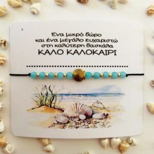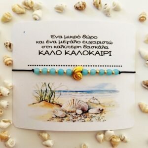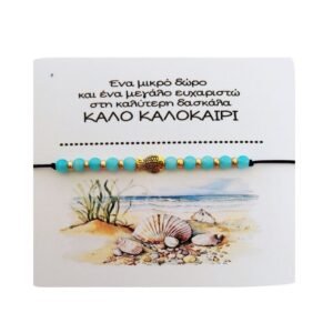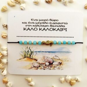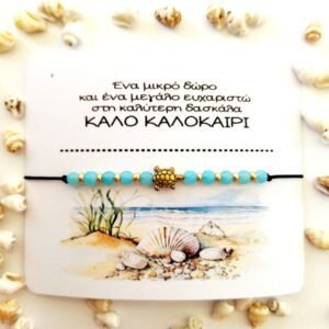 Βραχιόλι με κορδόνι και μεταλλικό στοιχείο χελωνίτσα και χαντρούλες