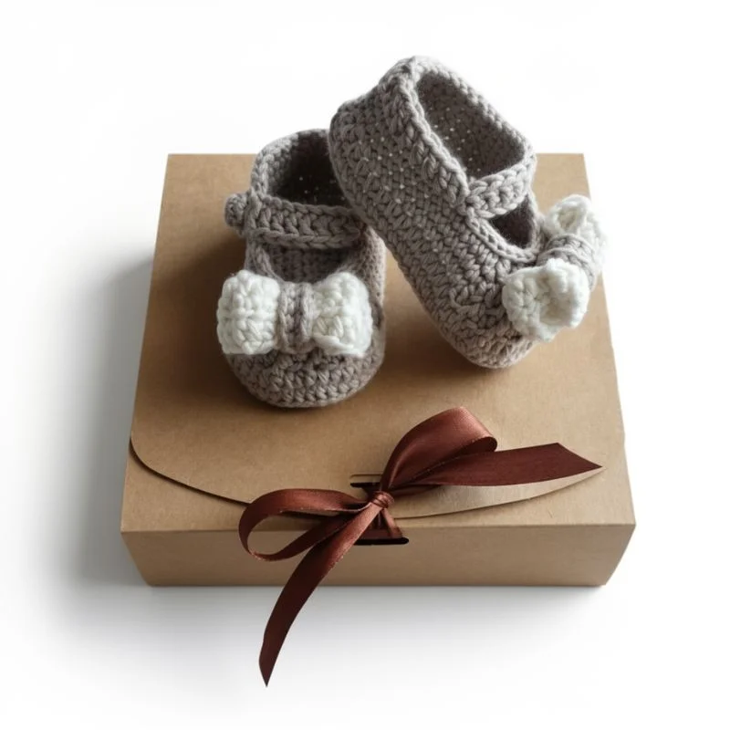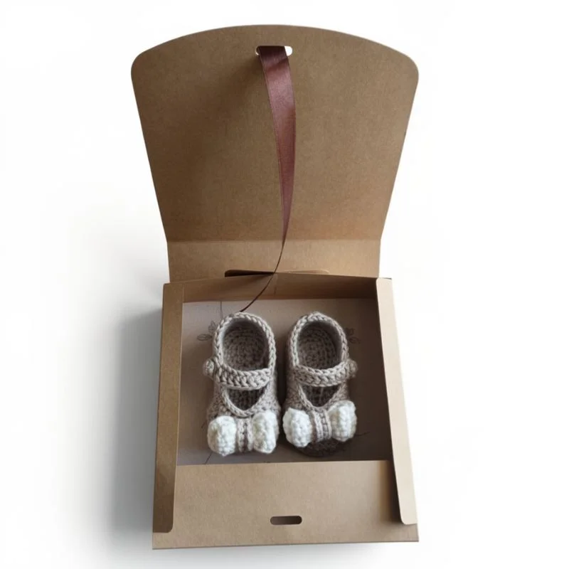 Χειροποίητα πλεκτά παπουτσάκια αγκαλιάς από 100% βαμβακερό νήμα, υποαλλεργικό κατάλληλο για το ευαίσθητο βρεφικό δερματάκι.