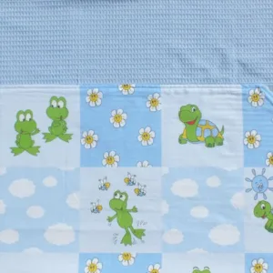 Κουβερτούλα αγκαλιάς διπλής όψεως από 100% βαμβακερό ύφασμα στην μια όψη και από 100% βαμβακερό πικέ στην άλλη.
