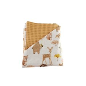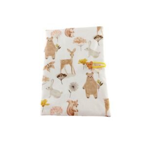 Σούπερ βρεφικό σετ δώρου για νεογέννητο με ύφασμα μοτίβο ζωάκια του δάσους σε χρώματα λευκό, καφέ και μπισκότο!