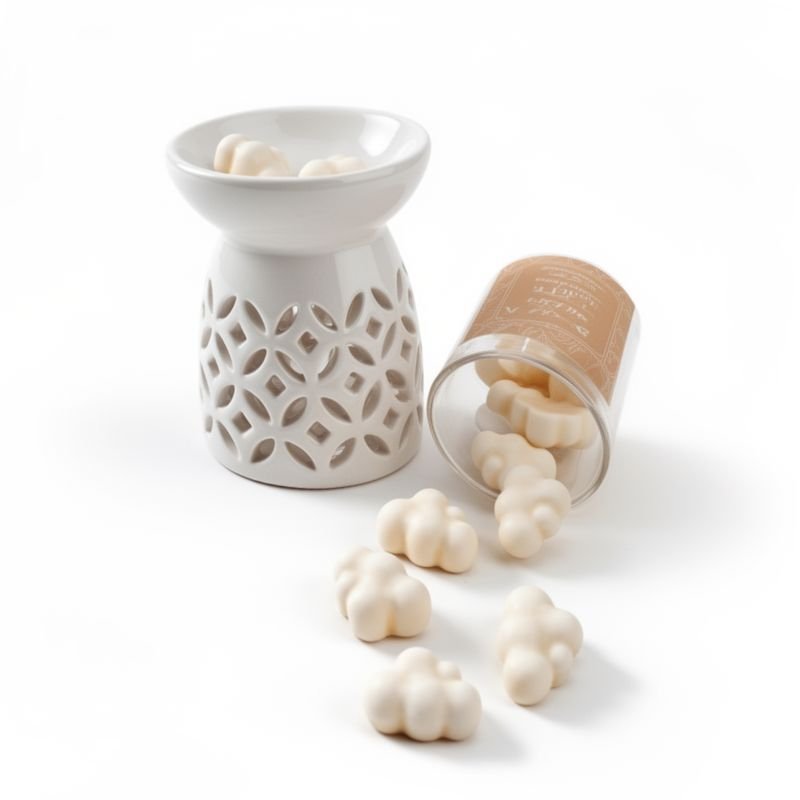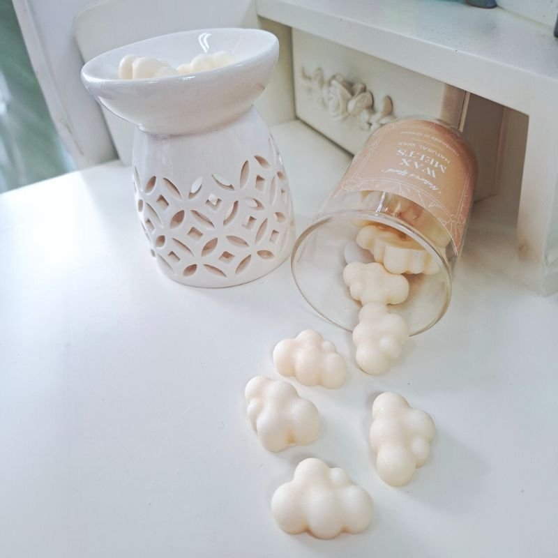 Τα wax melts λιώνουν απαλά, πάνω σε έναν κεραμικό αρωματιστή (melter) και απελευθερώνουν το άρωμα τους. Μεταμορφώστε φυσικά το χώρο σας σε καταφύγιο χαλάρωσης — στο σπίτι, στο γραφείο ή σε κάθε στιγμή που χρειάζεστε αποσυμπίεση.
