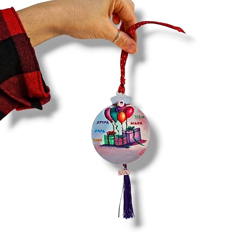 Ξύλινο γούρι ζωγραφισμένο στο χέρι με ακρυλικά χρώματα, περασμένο με βερνίκι για μεγαλύτερη διάρκεια.
