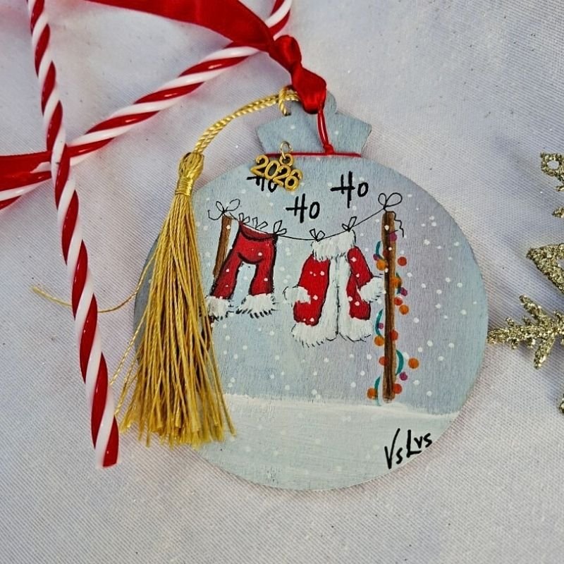 Ξύλινο γούρι ζωγραφισμένο στο χέρι με ακρυλικά χρώματα, περασμένο με βερνίκι για μεγαλύτερη διάρκεια.