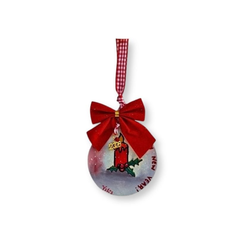 Στολισμένο με μεταλλικό 2026 και φιογκάκι κόκκινο.
