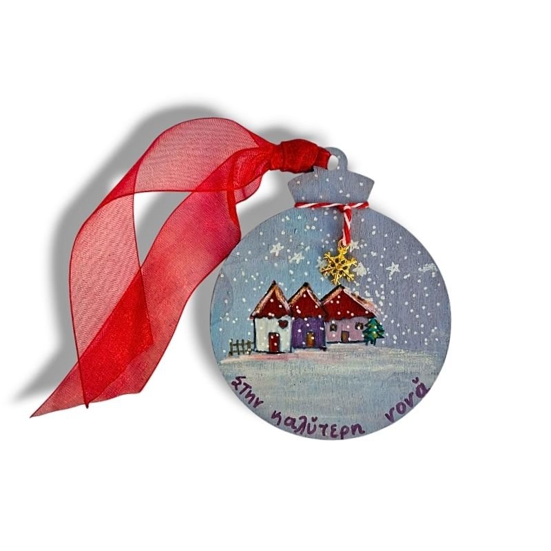 Ξύλινο γούρι σε σχήμα μπάλας, ζωγραφισμένο στο χέρι με ακρυλικά χρώματα. Διάλεξε ένα ιδιαίτερο, ονειροπόλο γούρι και κάνε τη διαφορά!