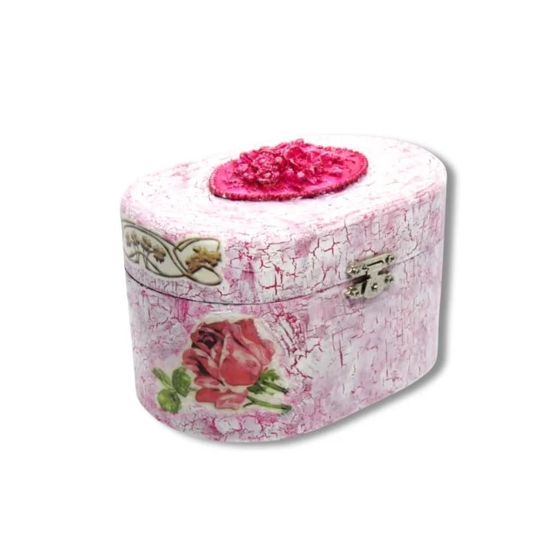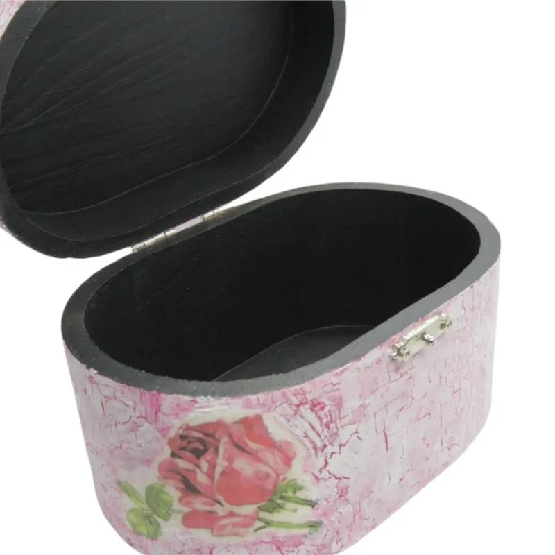 Ξύλινο κουτί μπιζουτιέρα κρακελέ με λουλούδια