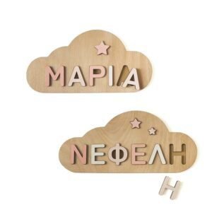 Ξύλινο παζλ με όνομα – Συνεφάκι