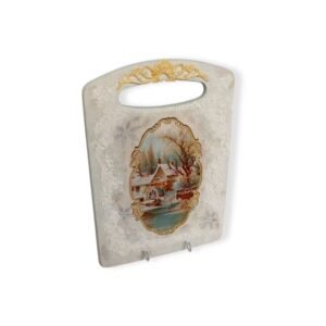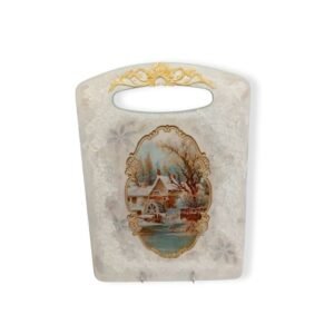 Ξύλο κοπής κρεμάστρα χριστουγεννιάτικο με εφέ χιόνι και 2 γαντζάκια 28x20cm.