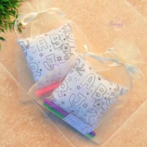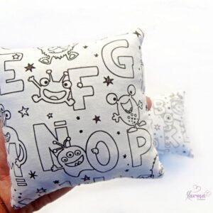 Τα μαξιλαράκια έχουν μέγεθος 15Χ15 εκ. και το κάθε μαξιλαράκι είναι σετ με 2 μαρκαδόρους πλενόμενους για να ζωγραφίζονται και να πλένονται για ατελείωτες ώρες παιχνιδιού! Έρχονται συσκευασμένα σε πουγκί οργάντζα έτσι ώστε να τα προσφέρετε κατευθείαν.