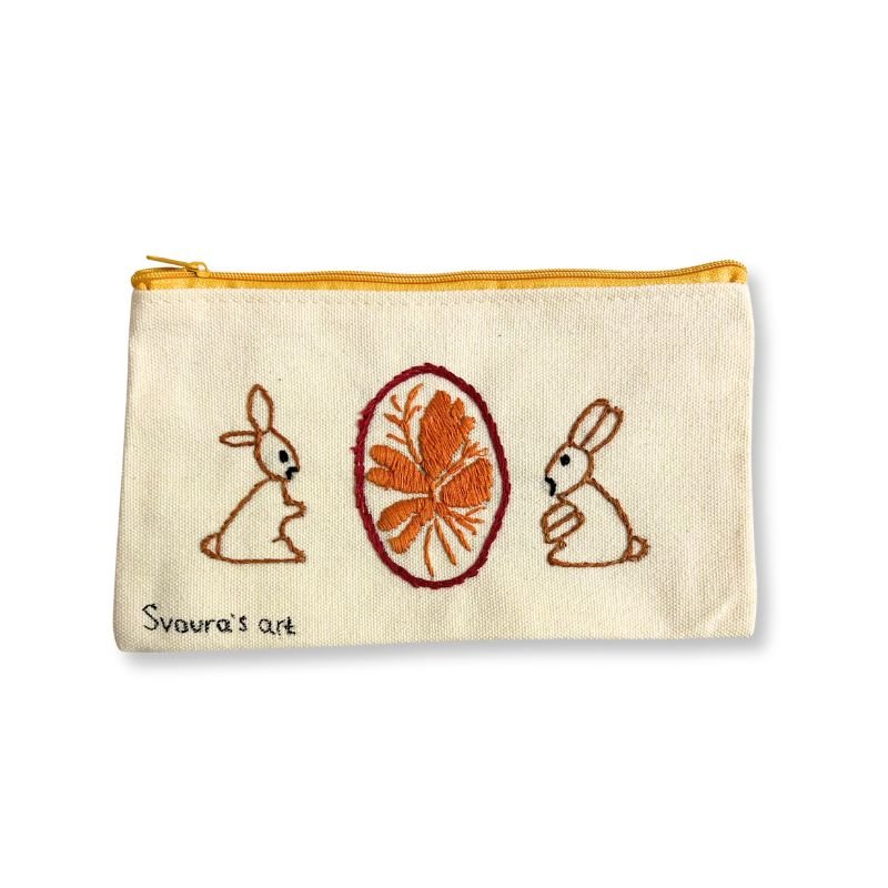 Χειροποίητο υφασμάτινο νεσεσέρ κεντημένο πάνω σε βαμβακερό ύφασμα, με μοναδικό σχέδιο με λαγουδάκια.