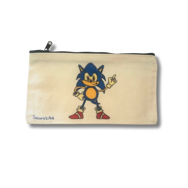 Χειροποίητη υφασμάτινη κασετίνα ζωγραφισμένη με ακρυλικά χρώματα πάνω σε βαμβακερό ύφασμα, με μοναδικό σχέδιο Sonic.