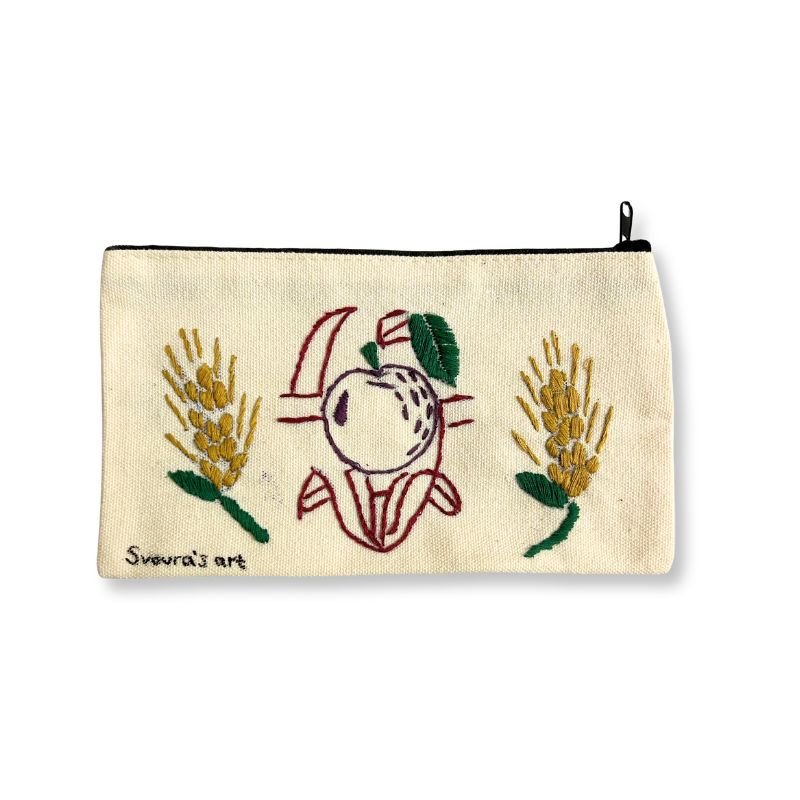 Χειροποίητο υφασμάτινο νεσεσέρ κεντημένο πάνω σε βαμβακερό ύφασμα, με μοναδικό σχέδιο με μήλο και στάχια.